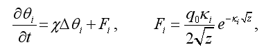 Комплексные интеграционные проектыПроект № 2.15 " Построение и анализ новых математических моделей сложных сред" Организации-исполнители: ИГиЛ СО РАН, ИМ СО РАН, ИВМ СО РАН Координаторы: ак. РАН Л. В. Овсянников, ак. РАН С. К. Годунов Исполнитель от ИВМ СО РАН: д.ф.-м.н., проф. В. К. Андреев 1. Изучена задача об устойчивости равновесного состояния слабо сжимаемой жидкости, ограниченной снизу неподвижной твердой, а сверху — теплопроводящей стенкой конечной толщины. Рассмотрена система, состоящая из двух бесконечных слоев Ω1, Ω2 толщиной l1, l2, слой Ω1 занят льдом, а Ω2 заполнен водой. В дальнейшем все величины с индексом «w» относятся к жидкости, заполняющей область z1 < z < z2, а величины с индексом «i» — ко льду, занимающему область 0 < z < z1. В Ω1 справедливо уравнение ![]() где θ — температура, χ — температуропроводность, Fi — функция теплового источника, q0 — интенсивность теплового потока на поверхности ледяного покрова, κ — показатель поглощения (показатель ослабления солнечной радиации). В Ω2 справедлива система уравнений Обербека-Буссинеска, в которой дополнительно учитывается функция теплового источника FW, описывающая внутреннее тепловыделение ![]() Найдено решение, описывающее состояние механического равновесия и исследуется устойчивость полученного решения по отношению к малым возмущениям. Доказана устойчивость длинноволновых возмущений и численно решена полная спектральная задача. При решении задачи для жидкости использовались значения физических параметров, характерных для воды в озере Байкал. Значения прочих физических параметров (поток тепла, интенсивность теплового потока, толщина льда и др.) принимались равными соответствующим средним значениям для Северного, Центрального и Южного Байкала. На рис. 44 приводятся графики инкрементов нарастания возмущений для различных зон Байкала: 1 — Северный Байкал, критическое волновое число α* = 2.4, критическая длина волны возмущения λ* = 737.91 м; 2 — Южный Байкал, α* = 3.06, λ* = 831.18 м; 3 — Центральный Байкал, α* = 3.26, λ* = 773.44 м. ![]() Рис. 44. Инкременты нарастания возмущений ![]() Рис. 45. Линии тока На рис. 45 приведены линии тока, построенные при значениях параметров, характерных для Центрального Байкала. В отличие от других зон здесь имеются две конвективные ячейки. Построены нейтральные кривые для различных значений числа Био и найдены критические числа Релея. Из расчетов следует, что при уменьшении числа Био критические числа Релея убывают, а область неустойчивости смещается в область меньших по значению волновых чисел. Однако рост интенсивности теплообмена имеет слабое стабилизирующее влияние. 2. Исследовано инвариантное решение двумерных уравнений термодиффузионного движения ![]() Этому решению можно дать следующую интерпретацию. Предположим, что на границе раздела двух смесей y = 0 поверхностное натяжение линейно зависит от температуры и концентрации: σ(θ, c) = σ0 − κ1θ − κ2c, где κ1 > 0, κ2 — постоянные. В начальный момент времени первая смесь заполняет слой −l1 < y < 0, а вторая — слой 0 < y < l2. Смеси находятся в покое, и при t = 0 во всем пространстве мгновенно создается поле температур θj = Ajx и поле концентраций cj = Bjx. Термоконцентрационный эффект и градиенты давления fj(t) порождают движение смесей, в котором поверхность раздела остается плоскостью y = 0, а траектории являются прямыми, параллельными оси x. Функции uj, Tj, 